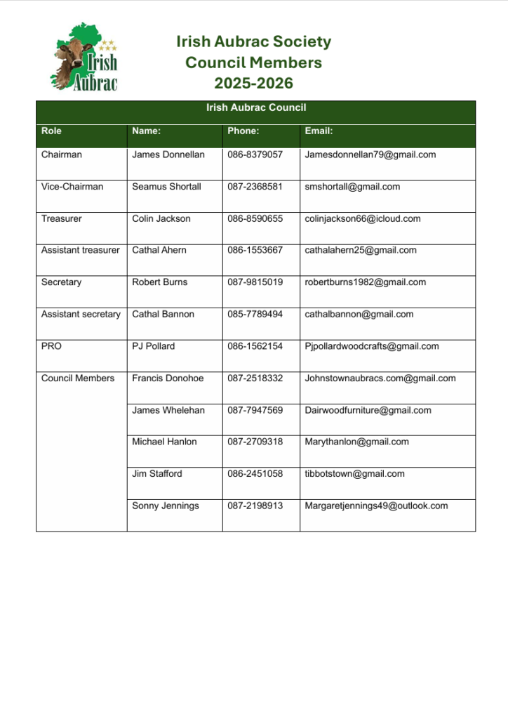 THE IRISH AUBRAC SOCIETY